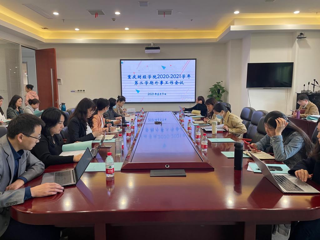 4月9日上午,我校2020-2021学年第二学期外事工作会议在行政楼2303会议室顺利召开。会议由我校国际合作交流处处长石转转主持。学校各二级学院院长、党总支书记、外事秘书及专、兼职辅导员老师出席了会议。