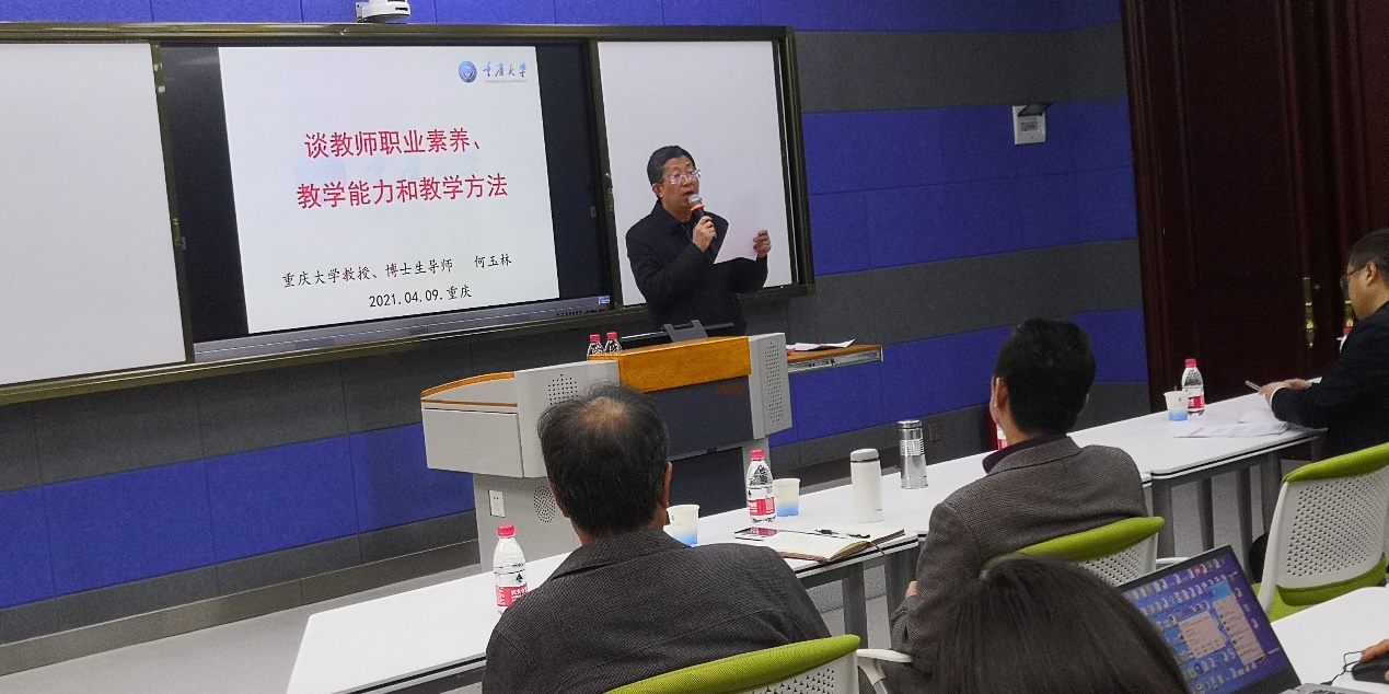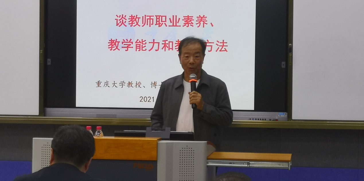 为进一步造就一支师德高尚、业务精良的高素质、高水平的教师队伍,根据学校教师教育教学能力提升的相关要求和学校工作部署,49日下午14:00,教师发展中心组织的“新晋升职称教师2021年专项培训活动”在教学楼1220智慧教室正式启动。本培训第一讲的主题是“教师的职业素养”,教师发展中心特别邀请了重庆大学何玉林教授主讲。本次讲座由沈民副校长主持,校长吴华安、组织人事部部长崔中山、教师发展中心主任宁先雄及50余位新晋升职称(教授、副教授、讲师)教师全程参加聆听了本次讲座。