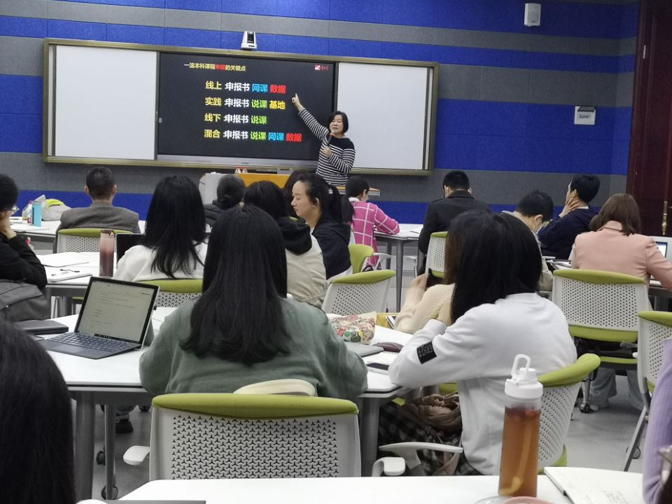 为抓实抓好一流本科课程建设,全面提升一流本科课程申报质量,2021年4月20日上午,在1220智慧教室教务处和教师发展中心联合举办一流本科课程建设与申报的讲座。讲座邀请了超星集团慕课编辑部课程运营总监孔鑫凯老师做主讲人。各学院负责人、2019和2020年新晋升副教授、教授的教师,以及有意愿申报一流本科课程的教师们参加了本次培训,培训会由教师发展中心滕学英副主任主持。