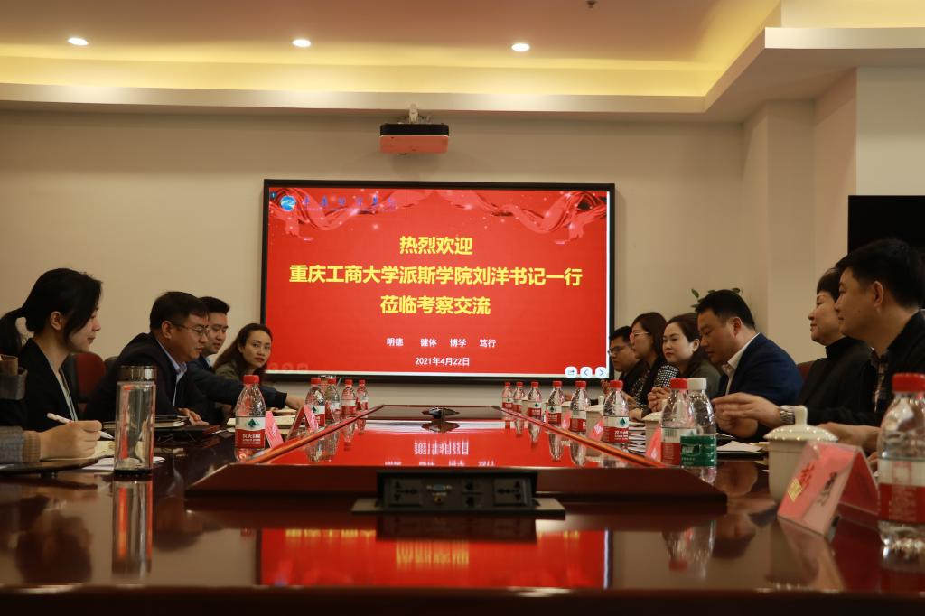 4月22日上午10点,重庆工商大学派斯学院党委书记刘洋、副校长李雁平等共计15名代表莅临我校考察学习,交流经验。我校党委书记张毅、党委副书记陈龙国、校长助理李春雷、党政办公室副主任王艺燃、党群工作部部长李刚、党委宣传部部长倪倩茜、财富管理学院副书记宋钰静参加会议。