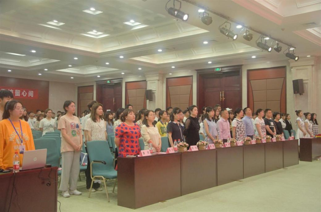 大会伴随着国歌拉开帷幕,学生工作部副部长乐晓勇宣读了2021届优秀毕业生宣讲团聘任文件,学校党委副书记陈龙国、党委宣传部部长倪倩茜为优秀毕业生颁发了聘书。