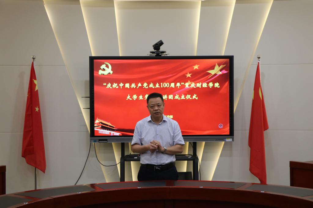 仪式最后,陈龙国副书记总结发言,他强调,党史学习教育宣讲是我校教育和引导全校青年学生学好用好党史这门必修课的重要举措之一,全体宣讲团成员责任重大使命光荣,要做到:一是要增强思想自觉和行动自觉,以高度的政治责任感和使命感,扎扎实实把宣讲工作做好、做精。二是要把党的历史、党的精神、党的故事,通过“青言青语”面向青年解读好中国共产党的精神谱系,大力推动党史学习教育深入人心。三是要发挥好党史学习教育的榜样、示范作用,引导全校师生真正做到学史明理、学史增信、学史崇德、学史力行。以高标准高质量为目标,完成党史学习教育宣讲任务,以党史学习教育成果助推学校高质量发展,为党的百年华诞献礼。