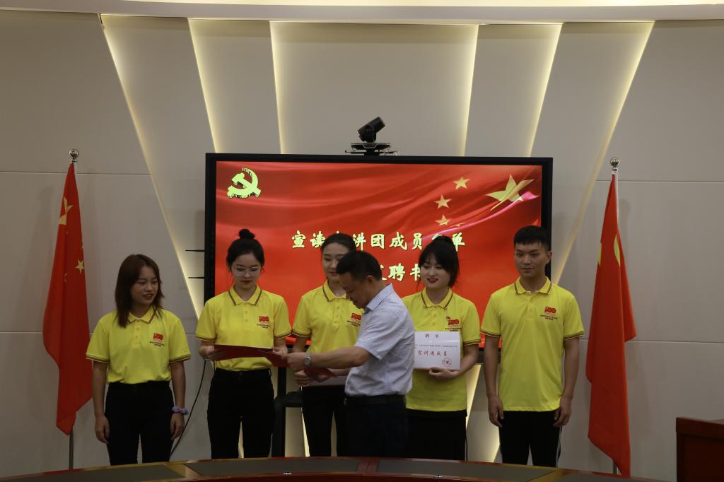 成立仪式上,校团委书记夏文瑞宣读宣讲团成员名单,校党委副书记陈龙国为大学生宣讲团成员颁发聘书。宣讲团成员们纷纷表示在今后的宣讲中,将会始终跟从中国共产党的领导,坚定理想信念,讲好党史,传播好优秀精神。运用多样化的讲解方式,将党史的精彩故事呈现在眼前,将党员的先进精神埋入心中。