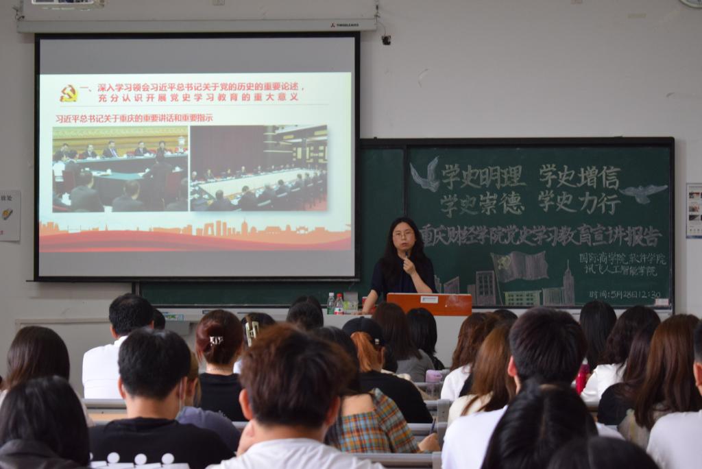 为有效推进党史学习教育进程,真正领悟党史学习思想,2021年5月28日中午,特邀校长助理房朝君为讯飞人工智能学院、软件学院、国际商学院开展党史学习教育专题讲座。讲座在教学楼1301教室举行,讯飞人工智能学院、软件学院、国际商学院全体师生党员参加。