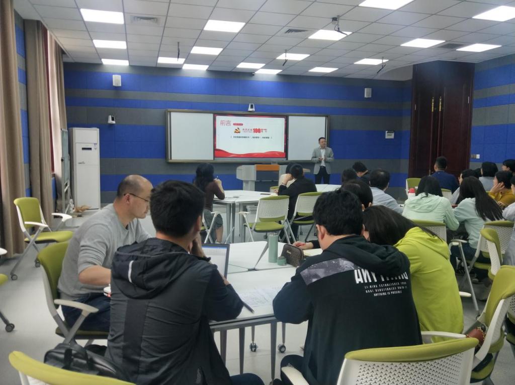 学习百年党史,汲取奋进力量。为了深入贯彻落实党史学习教育精神内涵,促进教师党员们学史明理、学史增信、学史崇德、学史力行,5月26日中午,校党委陈龙国副书记在1220教室为公共管理学院全体教师党员讲授党史学习教育专题讲座,会议由公共管理学院党总支副书记李辉主持。