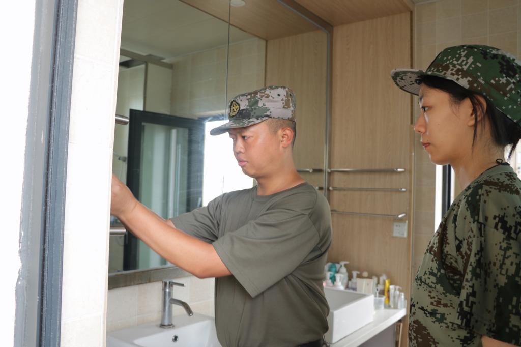 参谋长表示,要防患于未然,把危险扼杀在摇篮中,把生命安全放在首位。不仅要在训练过程中做到规范化,寝室内务和安全也不能忽视。此次内务检查,发现大部分寝室床铺都装上了床帘,但考虑到床帘会对寝室造成安全隐患。如若发生火灾,窗帘不仅会加速燃烧,助推火势,还可能会阻碍逃生,威胁到学生的生命安全,因此参谋长要求同学们即刻改正。