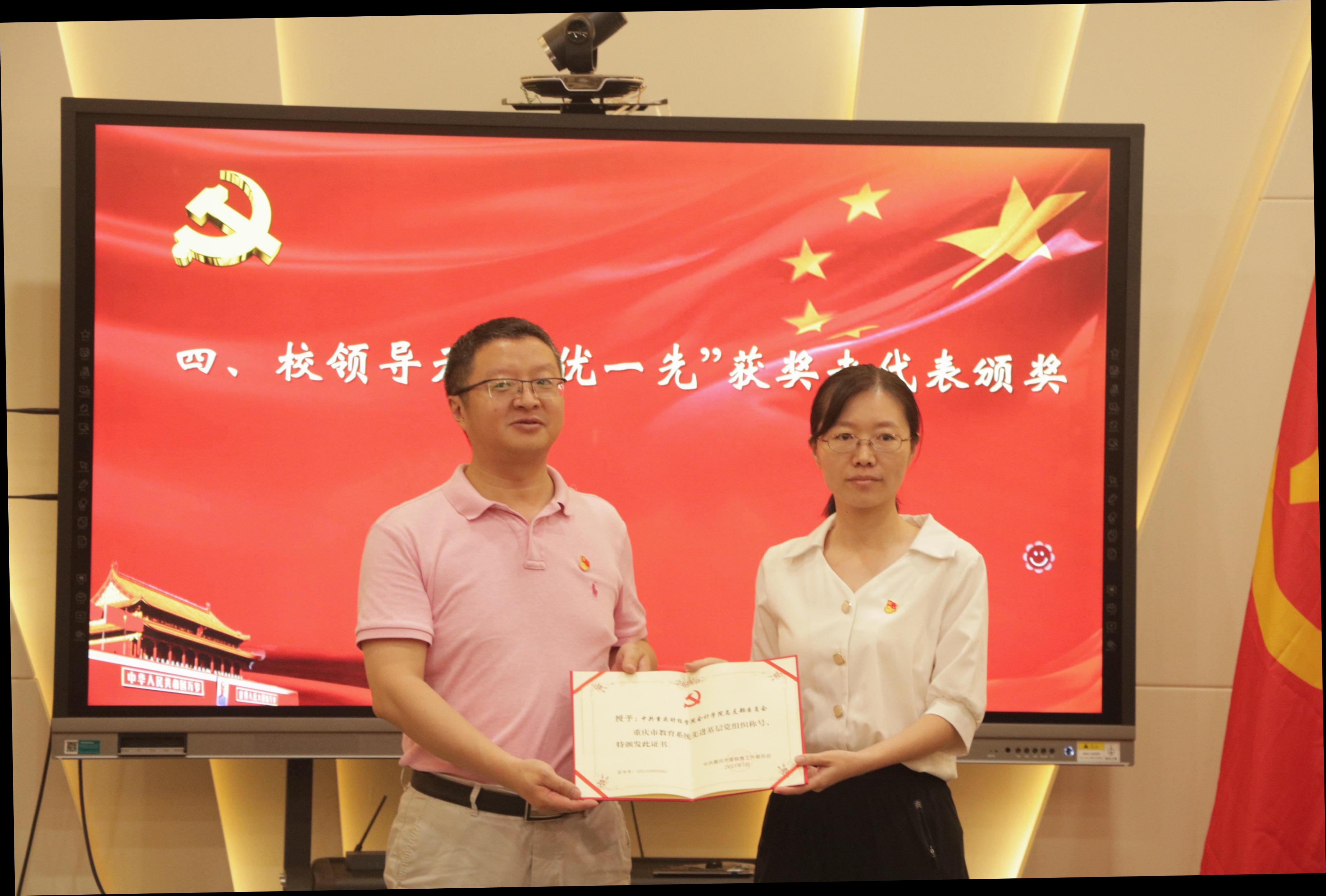 会上,全体党员观看了《中国共产党百年述职报告》、集体重温入党誓词,共同回顾中国共产党走过的百年奋斗历程。校长吴华安和校长助理房朝君宣读了市委教育工会和学校表彰文件,校领导分别为受到学校2020-2021学年先进基层党组织、党建专项奖、优秀共产党员和优秀党务工作者表彰的代表颁奖。姚转花、张玉华、徐凯三位受表彰的代表进行了交流发言。