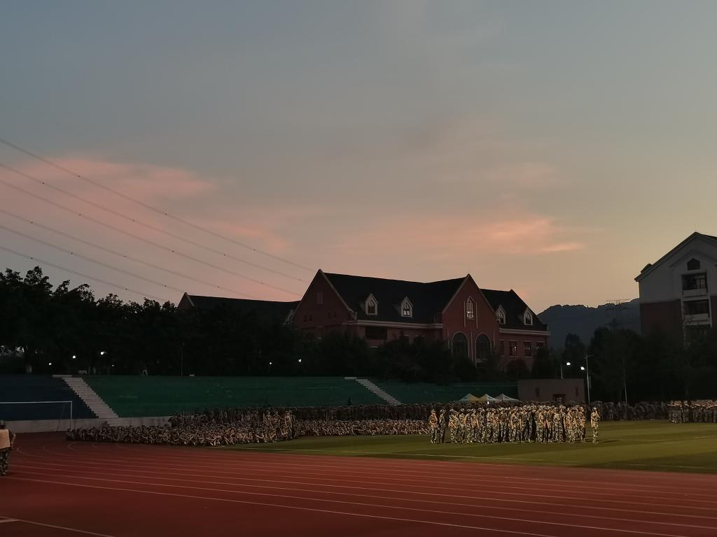 霞彩的朵飘在蓝蓝的天空中点缀,时而滚作一团团棉絮,时而化作长长的绫罗,像一缎轻纱,被夏风徐徐吹送,忽然散开,飘飘上升,溶进又深又蓝的天空。霞光奔泻的云海,像是远在天边,又似近在咫尺轻拢慢涌,铺排相接变化多姿的云朵总是引发起无数美好的遐想,也不失为辛苦训练时让人放松的可爱趣物。在这样的好天气下,同学们积极参与训练的热情也随之高涨,步履整齐,拳脚有力,军姿飒爽,好一副少年模样!
