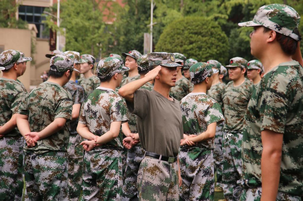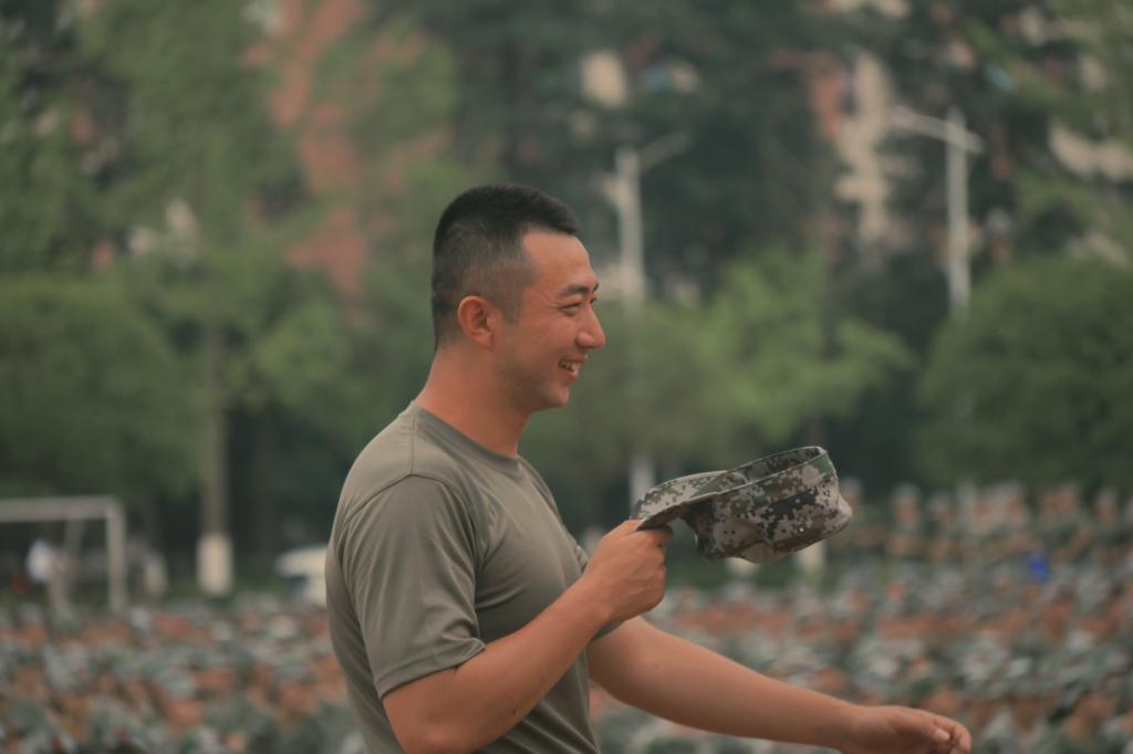 仍记得,火热的蒸笼天,他们迈着健步走来,这便是你们的第一次相见,也注定了接下来十几天你们的缘分。训练时,他们总是很严格,刚毅的脸庞,不曾展露半分微笑。一声声铿锵有力的指令,训练出一套又一套整齐的动作,身为铁骨铮铮的男儿,也有万般柔情,他们耐心又细致,不断纠正你动作上的错误,在严格规范我们的同时,也体贴入微的关怀着我们,时刻关注我们的身体状况,“有不舒服的就举手打报告”是他们常挂在嘴边的话,在训练的苦累中,是教官们的关怀让你有信心和勇气坚持下去。