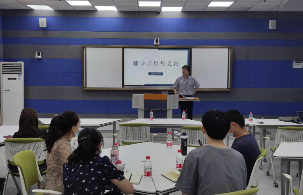 财富管理学院学团办副主任陈晨作了题为《辅导员修炼之路》的主题报告,就辅导员日常管理工作月台账进行了交流。学生工作部相关科室负责人就疫情防控、钉钉群的使用、学生资助体系、学生心理健康教育做了分享。
