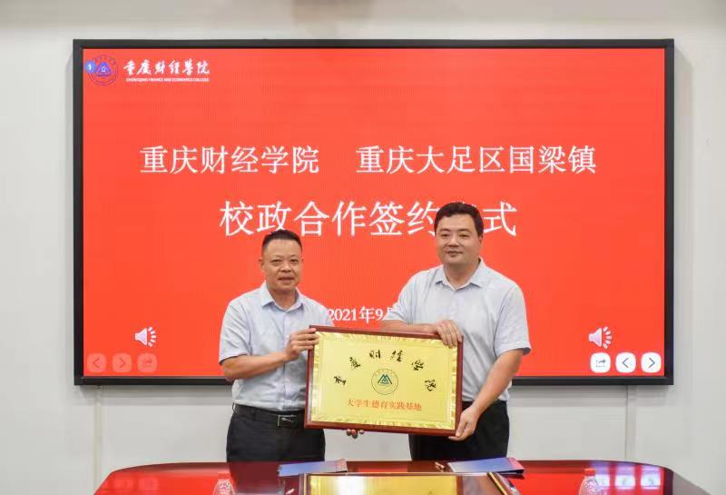 9月2日上午,我校党委副书记陈龙国与重庆市大足区国梁镇党委书记周建森在行政楼2303会议室签署校政合作协议并顺利授牌。