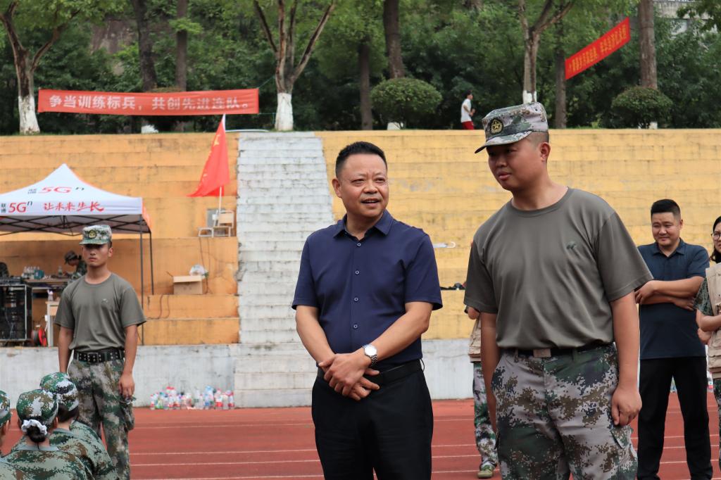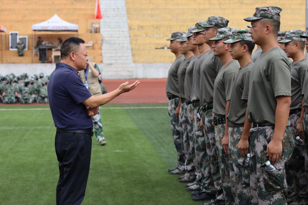 2021年9月8日下午,校党委副书记陈龙国莅临操场慰问在场三千多名新生,并对承训教官及新生辅导员的辛勤付出表示诚挚的谢意。