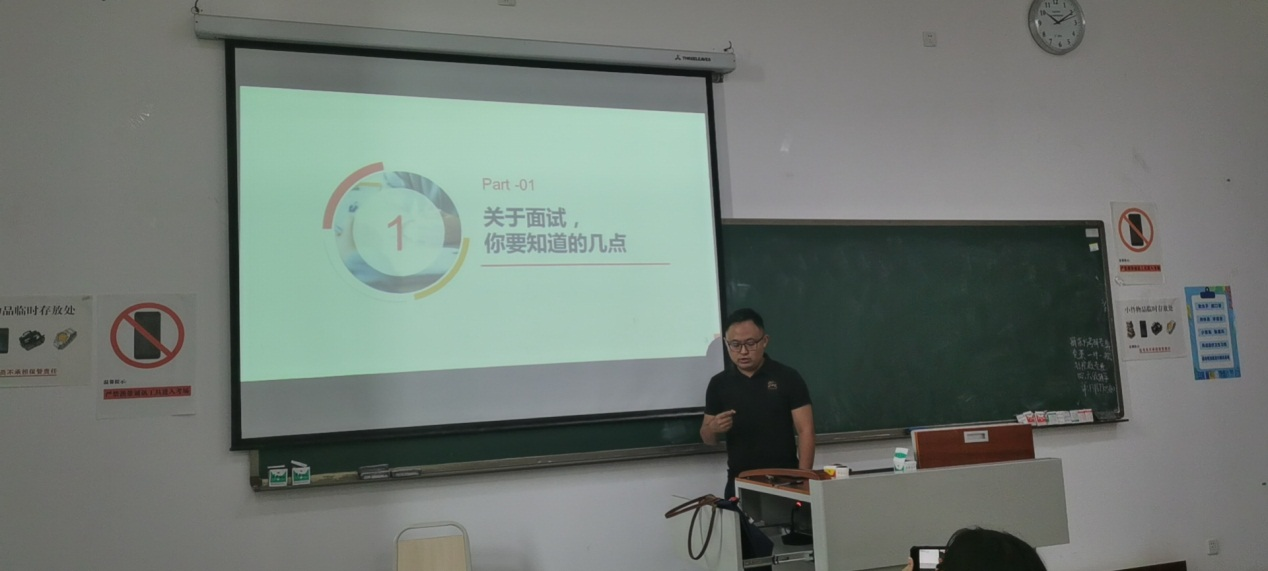 熊禹老师从用人单位的角度为大家讲解了简历中HR的关注点、面试技巧、面试注意事项,他以浅显易懂的方式给学生讲述了实用的面试技巧,并将其多年在工作和面试过程中总结积累的经验和智慧毫无保留地进行了分享。邓晓红同学说:“熊老师提出在不平等的竞争条件下如何去调整自己让我受益匪浅。”阿合尔史同学说:“老师分层讲解,语言风趣幽默,让人对未来更加自信,让人热血澎湃。”