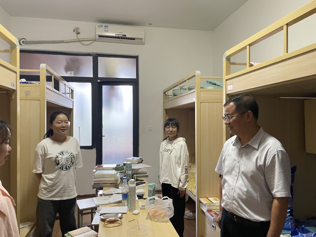 金秋送爽,丹桂飘香,又是一年中秋至。9月18日下午,学校党委书记张毅、党委副书记陈龙国带领党政办、学生工作部同志深入学生宿舍走访看望学生。