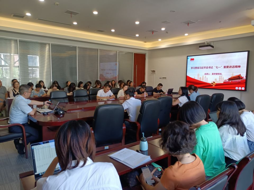 吴校长指出,习近平总书记“七一”重要讲话,立足中国共产党百年华诞的重大时刻和“两个一百年”历史交汇的关键节点,全面回顾了我们党团结带领全国各族人民开辟的伟大道路、创造的伟大事业、取得的伟大成就,深刻总结了伟大建党精神,系统阐述了以史为鉴、开创未来的“九个必须”根本要求,高屋建瓴、视野宏大、思想深刻、内涵丰富,是一篇马克思主义纲领性文献,是新时代中国共产党人不忘初心、牢记使命的政治宣言,是我们党团结带领人民以史为鉴、开创未来的行动指南。全校师生要把学习讲话精神与学习党的理论特别是习近平总书记系列重要讲话精神结合起来,联系实际、学深悟透,切实把思想和行动统一到党中央的决策部署上来。