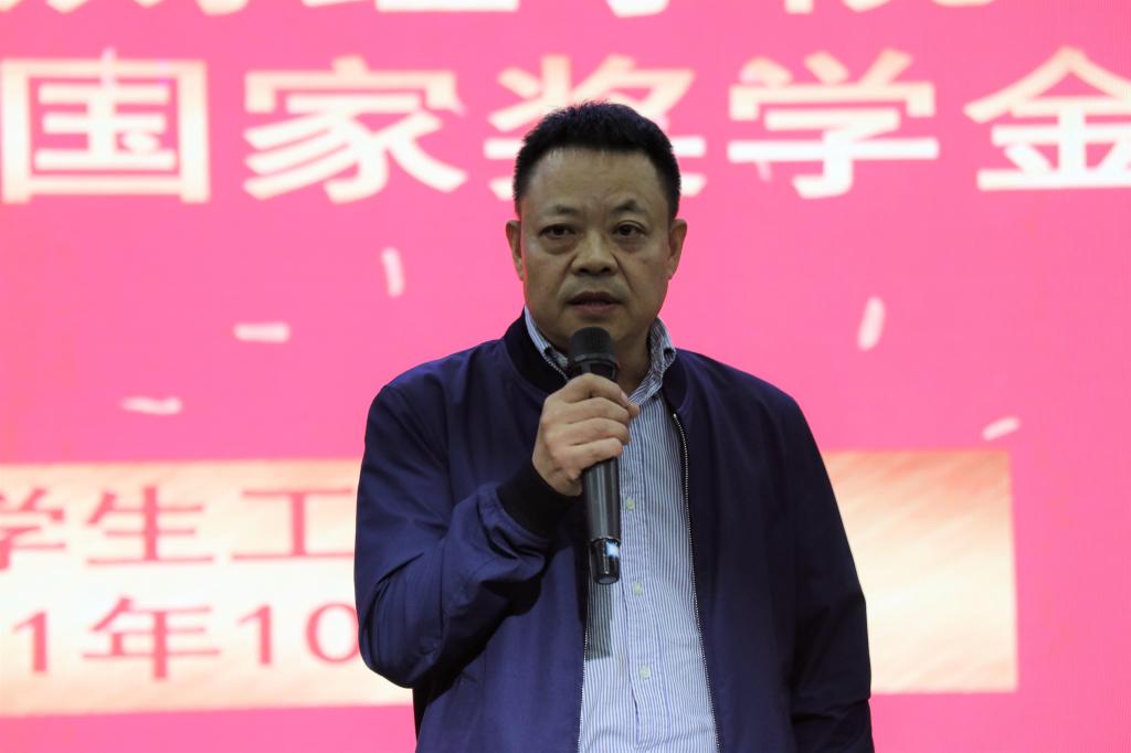 弄潮儿向涛头立,青年人于天地强。为进一步规范“国家奖学金”评选方式,更加体现公开、公平、公正、择优、透明的原则,激励广大学生发奋学习、全面发展、立志成才。10月14日中午12:00,我校2020-2021学年国家奖学金答辩会在学术报告厅成功举行。学校党委副书记陈龙国出席答辩会并讲话,党委委员、党委宣传部部长倪倩倩,党群工作部部长李刚、马克思主义学院院长常晓薇、学生工作部部长唐川川、教务处副处长兼图书馆馆长李喆、校团委副书记郭佳媛担任本次答辩评委。各二级学院书记、学团办主任、专兼职辅导员以及各学院学生代表共计400余人参加了本次答辩会。