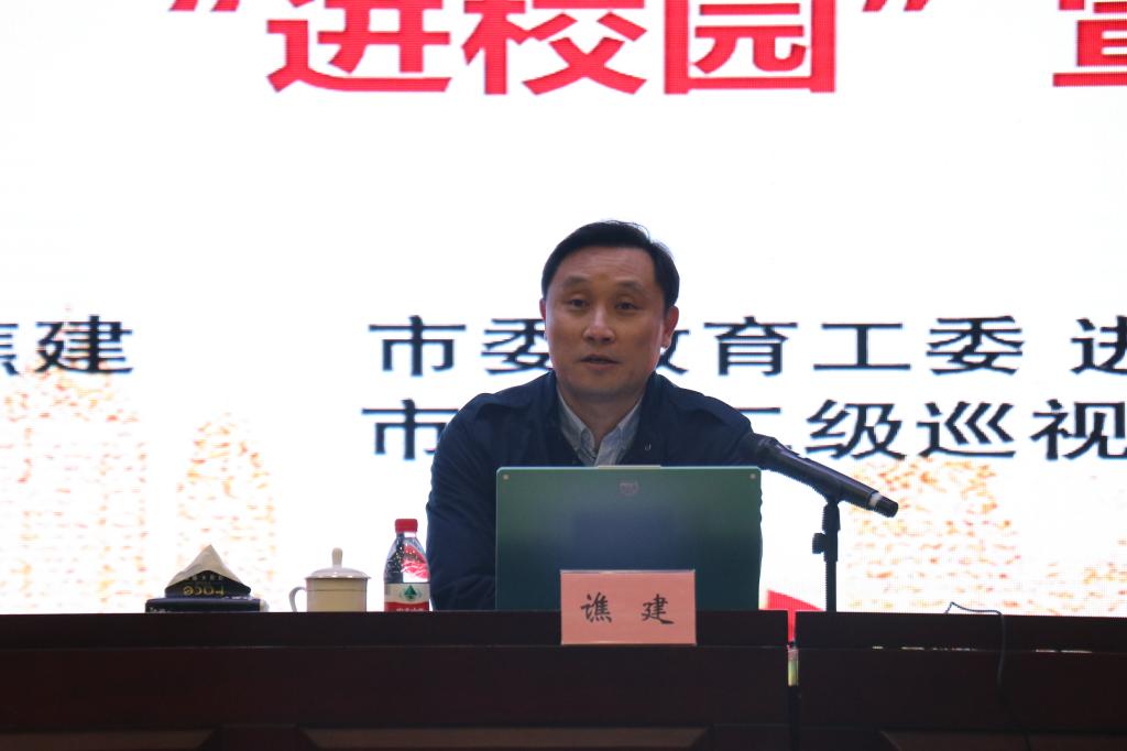 为认真学习贯彻习近平总书记“七一”重要讲话精神,持续深入推进党史学习教育。10月25日下午,我校学习贯彻习近平总书记“七一”重要讲话精神专题宣讲会在学术报告厅召开,由市教委二级巡视员谯建担任主讲。参加本次会议的有校领导、党委委员、纪委委员,中层干部、教师及学生党支部书记等。宣讲会由党委书记张毅主持。