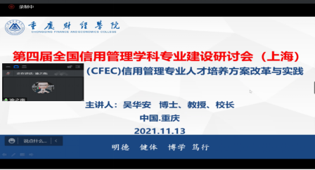 2021年11月13日,第四届全国信用管理学科专业建设研讨会在上海召开,会议由上海师范大学、上海立信会计金融学院 、上海市信用服务行业协会主办。校长吴华安教授应邀参会并在线进行了主题发言。