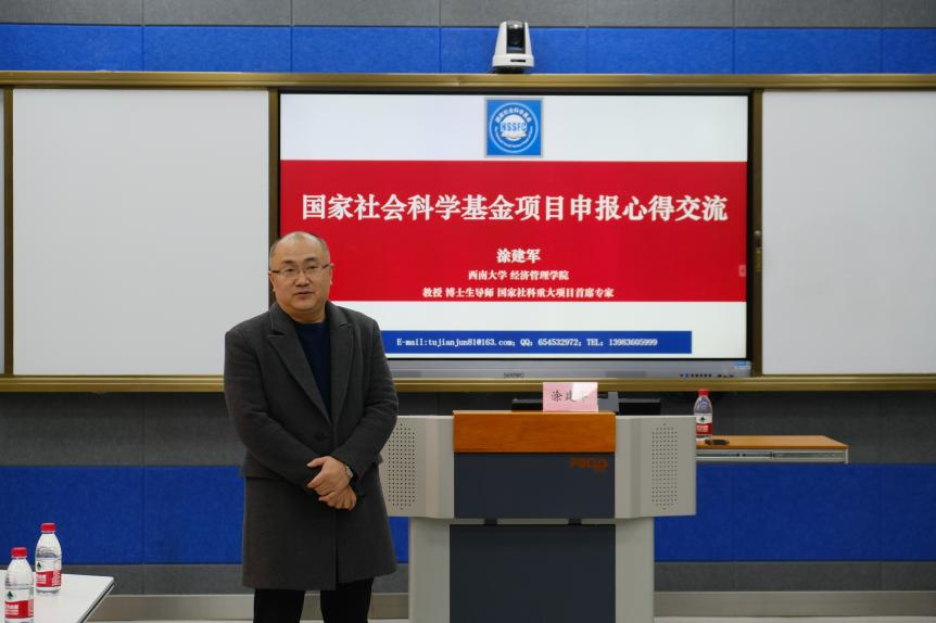 为进一步调动我校教师申报社科基金积极性,提升教师申报书撰写能力,由科研处主办,讯飞人工智能学院、生态环境空间信息数据挖掘与大数据集成重庆市重点实验室、重庆市生态环境规划空间信息管理与决策支持重点实验室、生态环境时空大数据挖掘创新研究群体承办的“国家社会科学基金项目申报”专题讲座2021年11月24日下午在智慧教室1220举行。国家社会科学基金重大项目首席专家涂建军应邀出席,并就国家社会科学基金项目申报经验与我校教师进行分享交流。会议由校长助理张立主持。