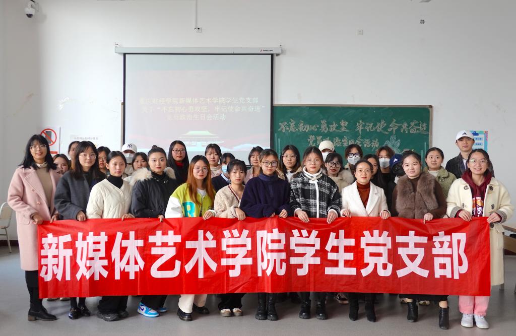 纪念自然生日是对生命的珍视和尊重,纪念“政治生日”是对党的热爱与忠诚。为丰富学生党支部政治生活,增强学生党员的荣誉感和责任感,牢记入党初心。2021年11月26日中午,新媒体艺术学院学生党支部在教学楼1611组织开展了“不忘初心勇攻坚,牢记使命共奋进---集体政治生日会”主题党日活动。学院党总支副书记甘雪梅、团总支书记朱明明、学生党支部书记周利娜、组织委员封雨洁、专职辅导员郭柳以及部分学生党员、入党积极分子参与了此次活动。