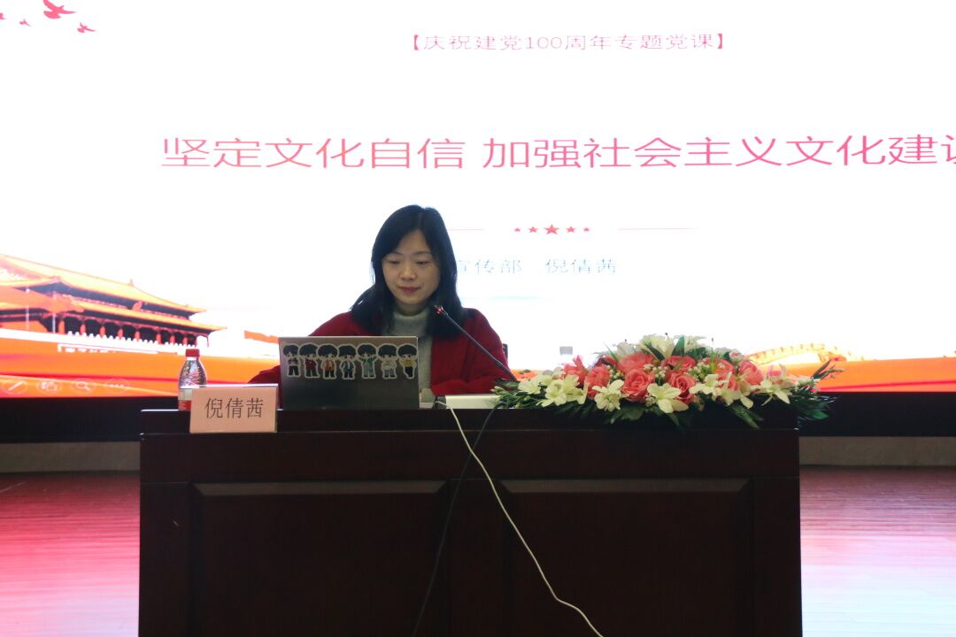 周希贤教授以“中国共产党的指导思想”为主题,结合党的十九届六中全会精神,围绕马克思主义中国化、毛泽东思想、邓小平理论、“三个代表”重要思想、科学发展观、习近平新时代中国特色社会主义思想的时代背景、核心内容、重要意义、伟大实践等内容,向学员们深入解读了中国共产党的指导思想,周教授勉励全体学员认真学习、投身实践,做中华民族伟大复兴中国梦的实现者、中华民族伟大复兴历史的书写者。张毅书记以“风华百年 行稳致远”为主题,重点解读了党的百年奋斗重大成就和历史经验的重大意义、中国特色社会主义新时代的历史性成就和历史性变革、党的百年奋斗的历史意义和借鉴历史经验三个方面的知识,张书记要求学员们加强党史学习,从党的百年奋斗历程中汲取智慧和力量。陈松部长以“把握历史发展大势 坚定走向民族复兴”为主题,讲解了中央政治局一年来的工作报告、中国共产党百年奋斗的重大成就、中国共产党百年奋斗的历史意义、中国共产党百年奋斗的历史经验、新时代的中国共产党五个方面的知识。邓德敏书记以“以史为鉴,开创未来;百年奋斗,再启新程”为主题,阐述了党的十九届六中全会主要内容、《中共中央关于党的百年奋斗重大成就和历史经验的决议》主要内容、百年党史中的三个“历史决议”、《决议》的学习启示四个方面的知识。倪倩茜部长以“文化自信”为主题,讲解了坚持文化自信、加强意识形态建设、推动社会主义文化繁荣兴盛、提高国家文化软实力、讲好中国故事五个方面的知识。