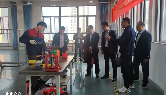 崔中山助理一行调研参观了重庆五一职业技术学院管道与制暖世赛基地、智能制造产教融合示范基地、美发世赛基地与汽车技术项目世赛基地。重庆五一职业技术学院副校长李康接待了调研人员。