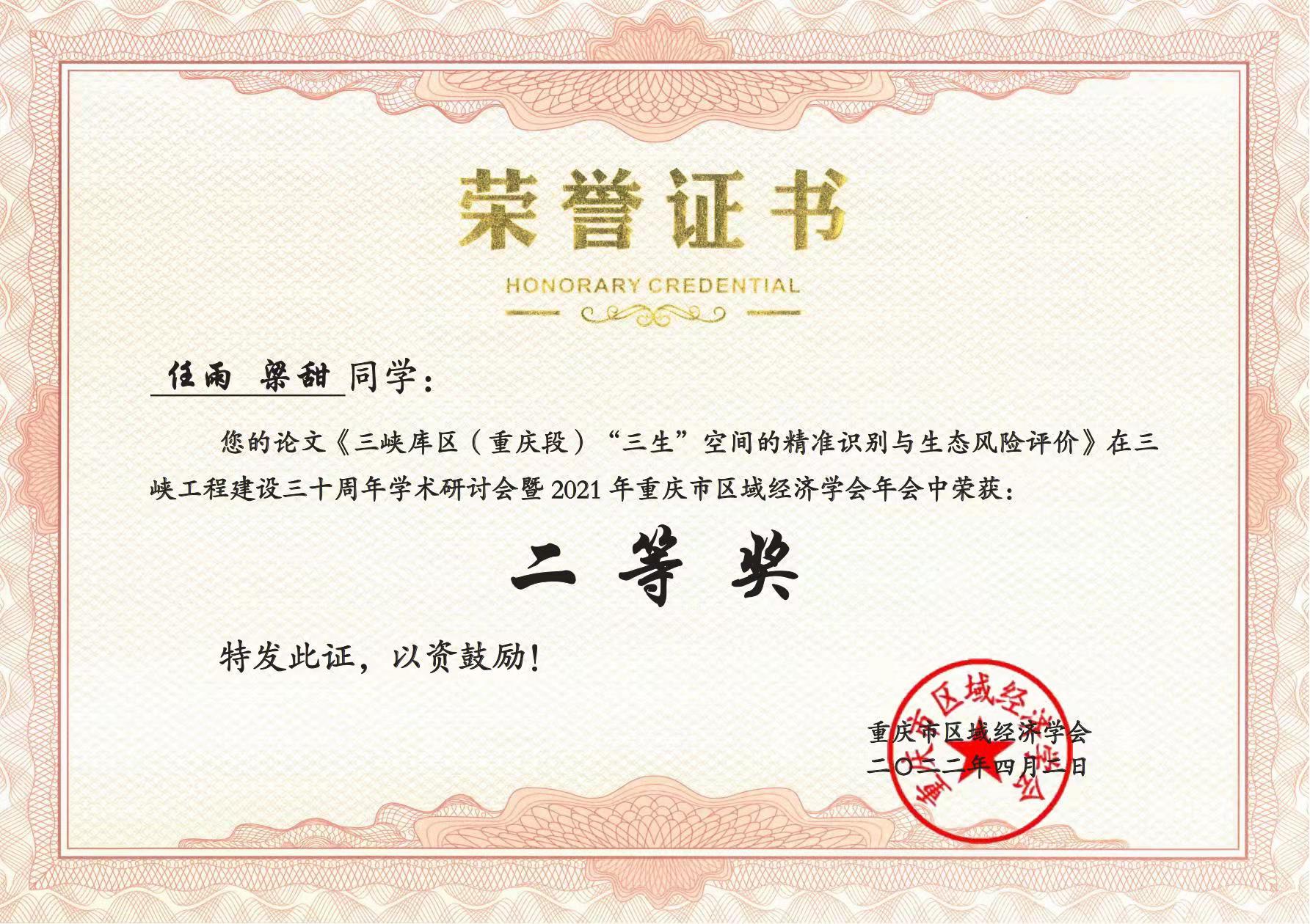 另,学校向本次会议投稿,由任雨、梁甜老师指导的学术论文获得二等奖。