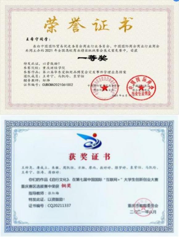 组织赛事提升能力。学院积极组织动员学生参与各类赛事。在国家级、省部级等比赛中获奖人次达100余次。先后组织学生参加中国大学生广告艺术大赛、大学生新媒体创意大赛、全国大学生电子商务“创新、创意及创业”挑战赛、全国高校商业精英挑战赛、全国大学生英语竞赛以及重庆市大学生心理成长论坛、校院级主题演讲比赛及征文比赛等。