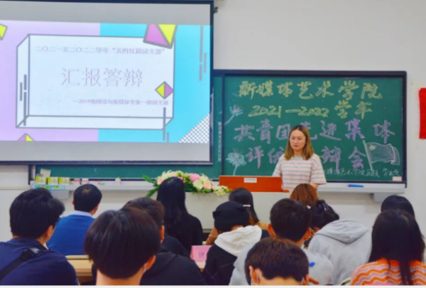 在迎接党的二十大胜利召开及建团一百周年之际,新媒体艺术学院开展了首次2021--2022学年“五四”先进集体评优答辩会。答辩现场,班级代表沉稳自信地以PPT形式从班级建设、班级亮点及所获成绩等方面全面展示了班级风采,镇定自若地回答了老师们的提问。经集体评议,最后从28个团支部中评定了4个先进团支部,其中1个团支部推荐至参加校级“五四红旗团支部”的竞评。
