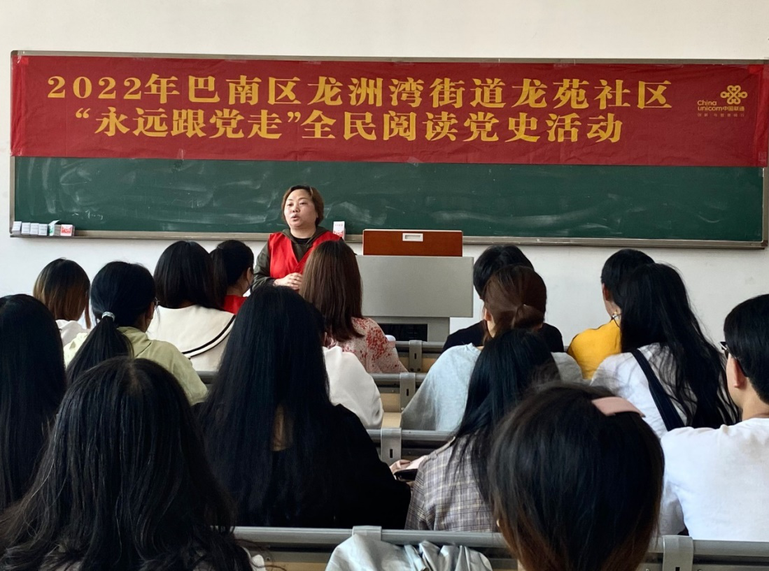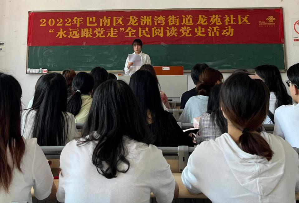 为加强党的基层组织建设,增强学史实效,提升党性修养,深化我院与社区党建联盟关系,4月20日下午,财富管理学院联合龙洲湾街道龙苑社区开展“永远跟党走”全民阅读党史活动。参与此次活动的有龙苑社区党支部副书记蒋超同志一行、财富管理学院师生党员及团员代表,本次活动由周洋同学主持。