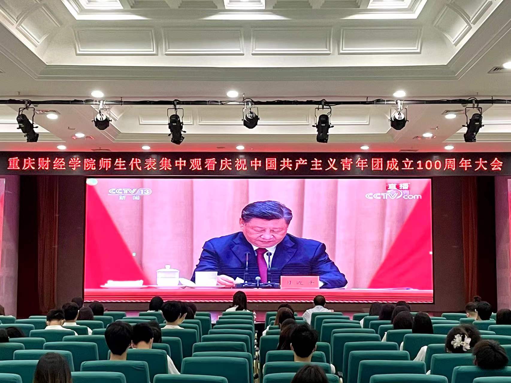 我校党委书记张毅、党委副书记房朝君、党委宣传部部长倪倩茜、学生工作部副部长张玉华、团委书记夏文瑞、各学院团总支书记及师生团员代表共计90余人,齐聚学术报告厅观看直播,共同见证了这一具有重大而深远意义的历史时刻。同时,我校团委还组织学生会、学生社团和各基层团组织的青年团员通过不同方式也观看了直播。