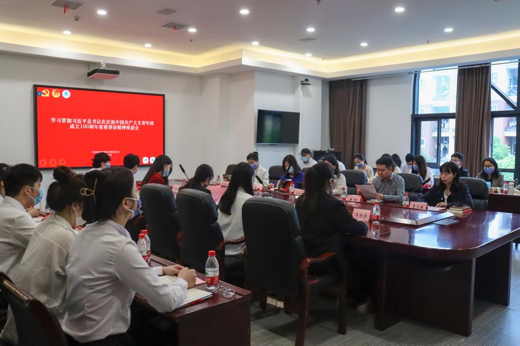 5月18日,学习习近平总书记在庆祝中国共产主义青年团成立100周年大会上的重要讲话精神师生代表座谈会在行政楼会议室举行。