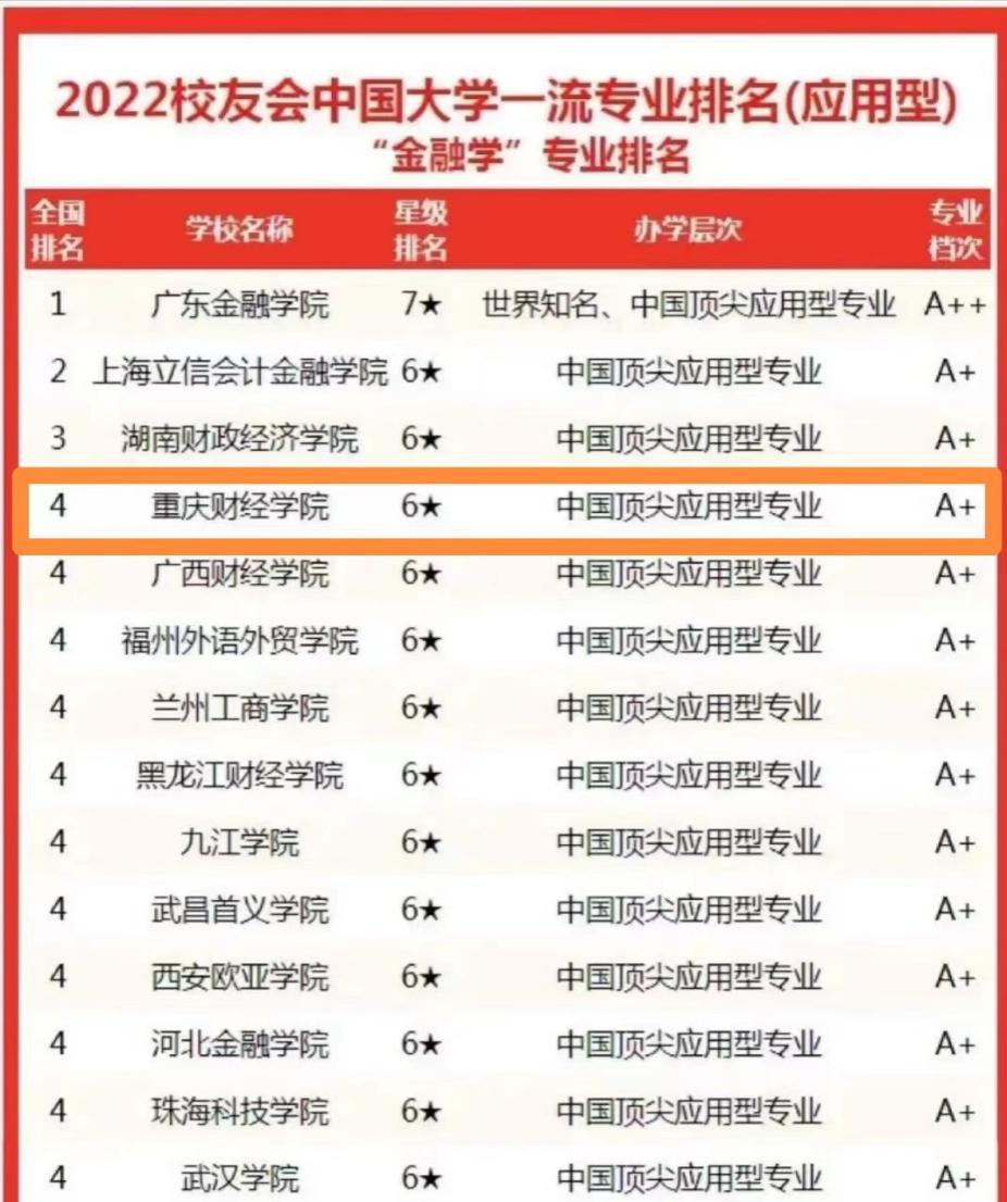 近日,由全国第三方大学评价机构艾瑞深校友会网(Cuaa.Net)撰写、科学出版社正式出版发行的《2022校友会中国大学排名-高考志愿填报指南》最新发布校友会2022年中国大学一流专业排名。据榜单显示,我校金融学专业入围中国顶尖应用型专业行列(六星级)。
