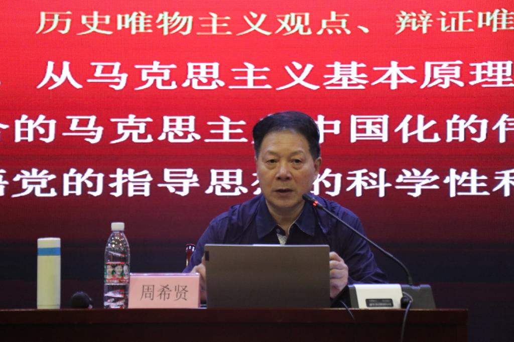周希贤以“中国共产党的指导思想”为主题,围绕中国共产党指导思想的基本内涵与发展历程,从马克思主义中国化、毛泽东思想、邓小平理论、“三个代表”重要思想、科学发展观、习近平新时代中国特色社会主义思想的时代背景、核心内容、重要意义、伟大实践等内容,向学员们深入解读了中国共产党的指导思想。