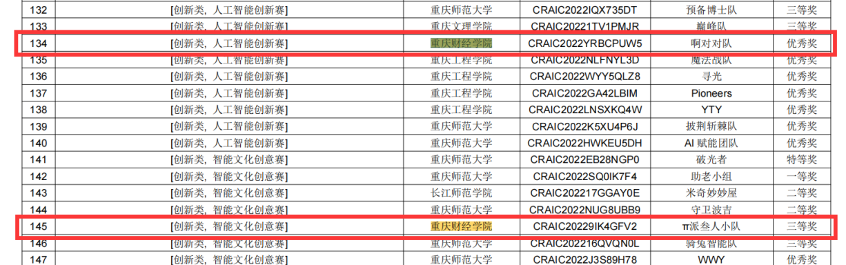 5月28日,软件学院夏祥礼副院长带队参加了第二十四届中国机器人及人工智能大赛重庆区域选拔赛,在校企师资共同指导下,我校选拔出两支参赛队伍,其中“π派叁人小队”荣获智能文化创意赛三等奖,“啊对对队”荣获人工智能创新赛优秀奖,实现我校在该项赛事奖项的零突破。