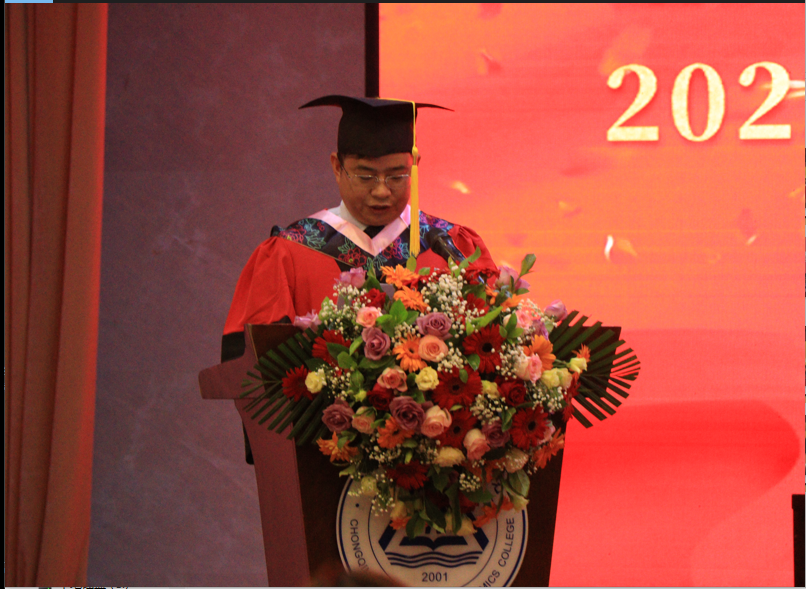 最后,校长吴华安总结发言。他表示这四年间,是同学们用青春装点了重财,在重财遇见了更好的自己,并提出了寄语与希望:希望2022全体毕业生要胸怀天下,做坚定的爱国者;终身学习,做明理的攀登者;坚定梦想,做不懈的奋斗者,愿同学们,跃入人海,各有各的风雨和灿烂。相信吴校长的祝福定会渗入在座学子的心,化作今后不断前行的动力。