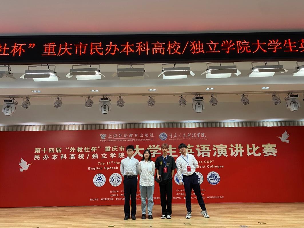 618-19日,由上海外语教育出版社主办、重庆人文科技学院承办的第十四届“外教社杯”重庆市民办本科高校/独立学院大学生英语演讲比赛成功举办。我校四名选手代表学校参赛。