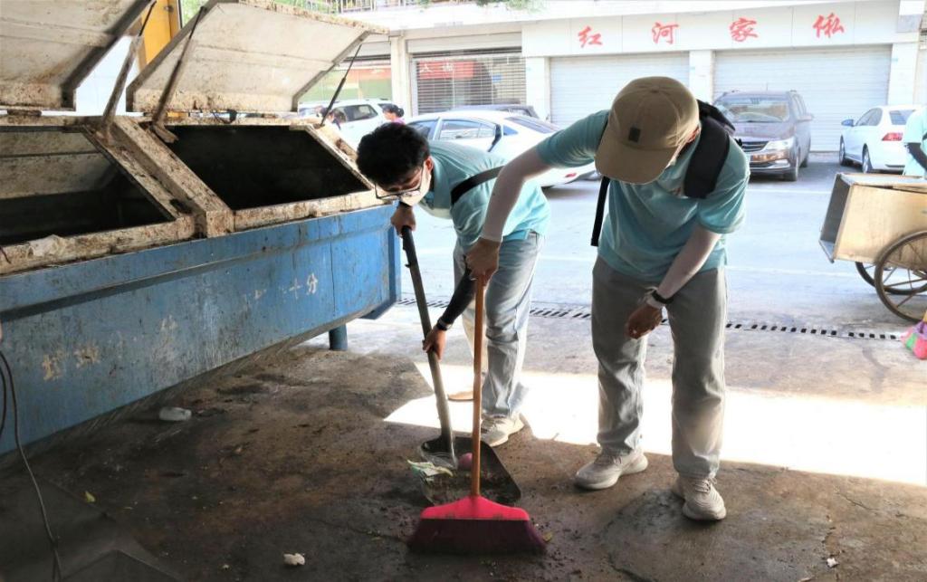 推进巴南区全国文明城区建设,美化社区环境。同日下午,实践团在巴南区一品街道正街开展街道清扫活动。烈日炎炎,志愿者们发扬着不怕苦不怕脏的精神,分区包片、分工合作,拿起扫帚、铁锹沿街认真打扫,拾捡绿化带里的垃圾、帮助环卫阿姨搬运垃圾推车等。