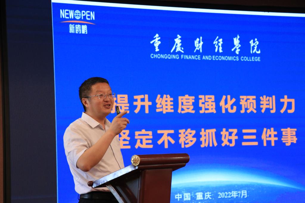 新鸥鹏集团专家委员会王崇举教授发表讲话。王教授高度肯定了本次务虚会的成果和意义,同时就学校发展面临的相关问题,从三个方面提出了自己的思考和建议,强调学校一定要突出发展特色,要以独具特色的应用型本科高校为发展目标。