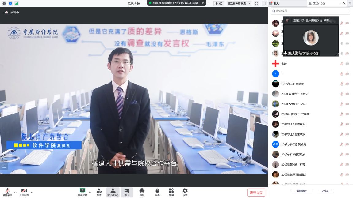 至此,本次见面会圆满结束。此次“云端见面会”不仅让2020级专升本新生对学校、学院有了更深入的了解与认识,同时也增强他们对学院的归属感,为尽快适应新的学习生活奠定了坚实基础。