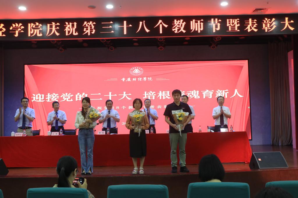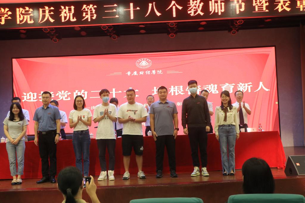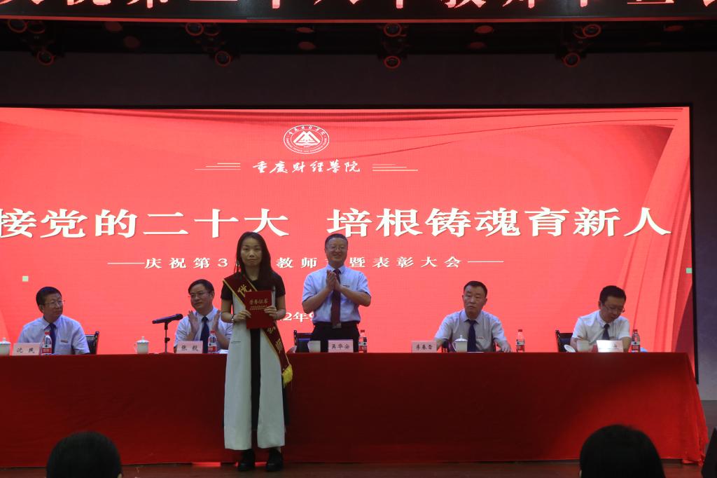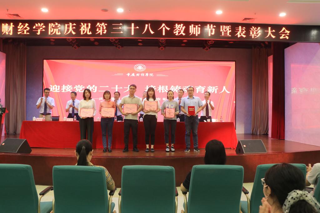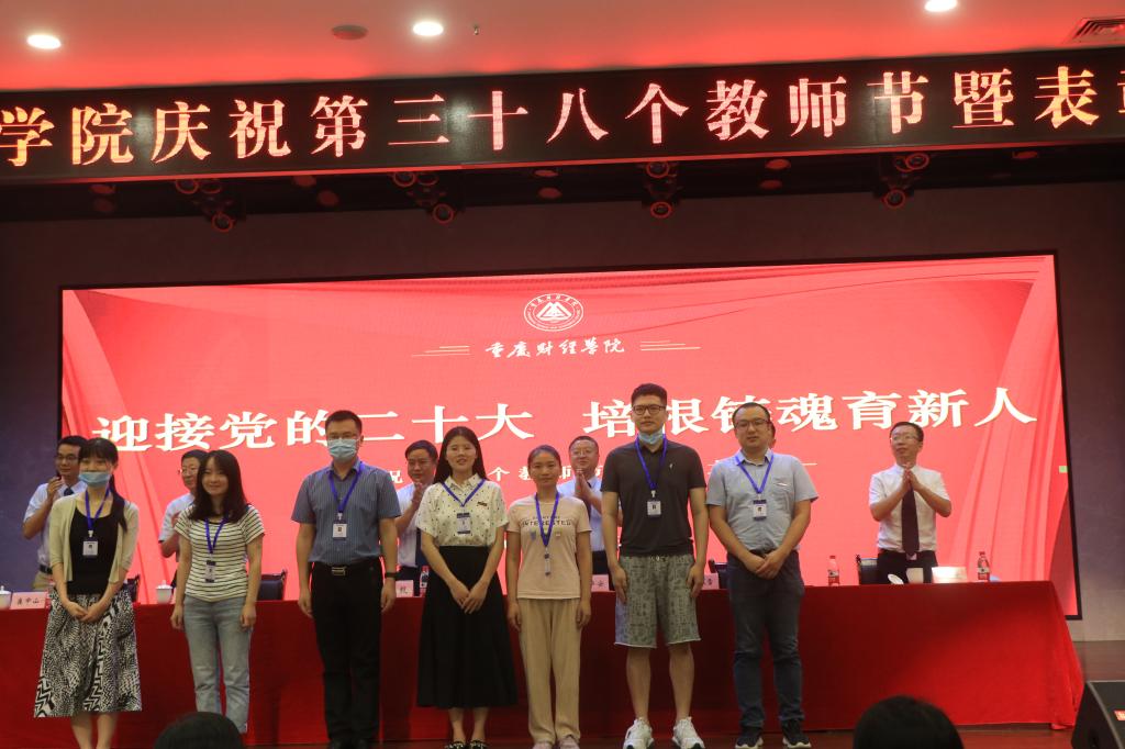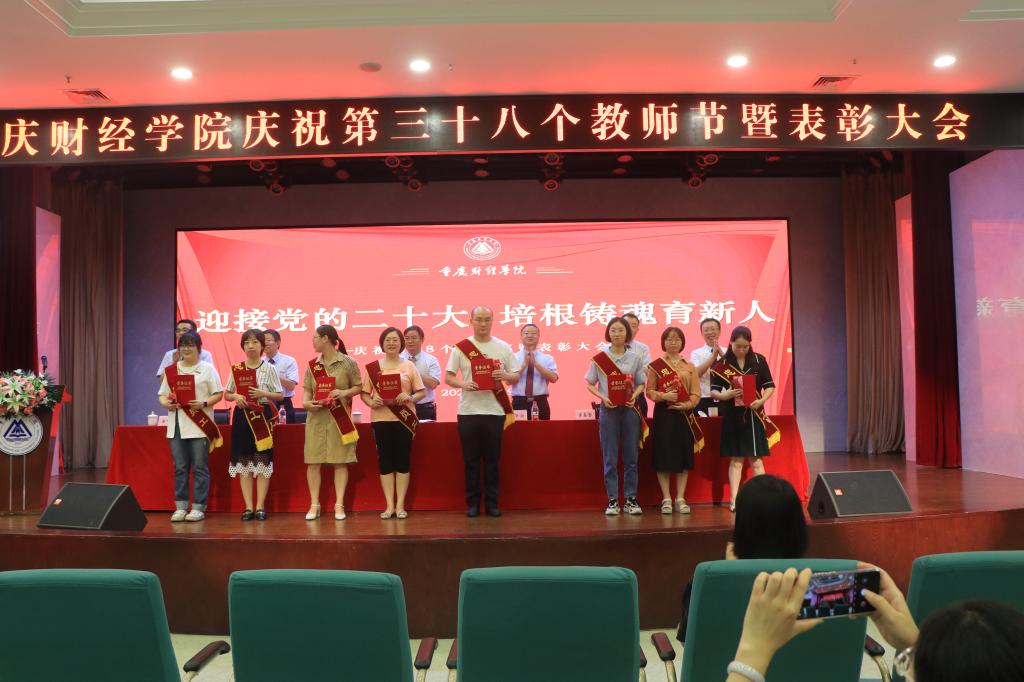 随后,校领导为受表彰教职工代表分别颁发“重庆市优秀辅导员”、“重庆市教书育人楷模”、校龄满10年的“忠诚员工”、“优秀员工”、“优秀教育工作者”等多项荣誉,同时还表彰了第一届“课程教学思政大赛”获奖教师、“标兵辅导员”、“优秀辅导员”以及“优秀教研室”和“优秀教研室主任”,并向广大教师为学校各项事业发展做出的重要贡献表示衷心感谢。