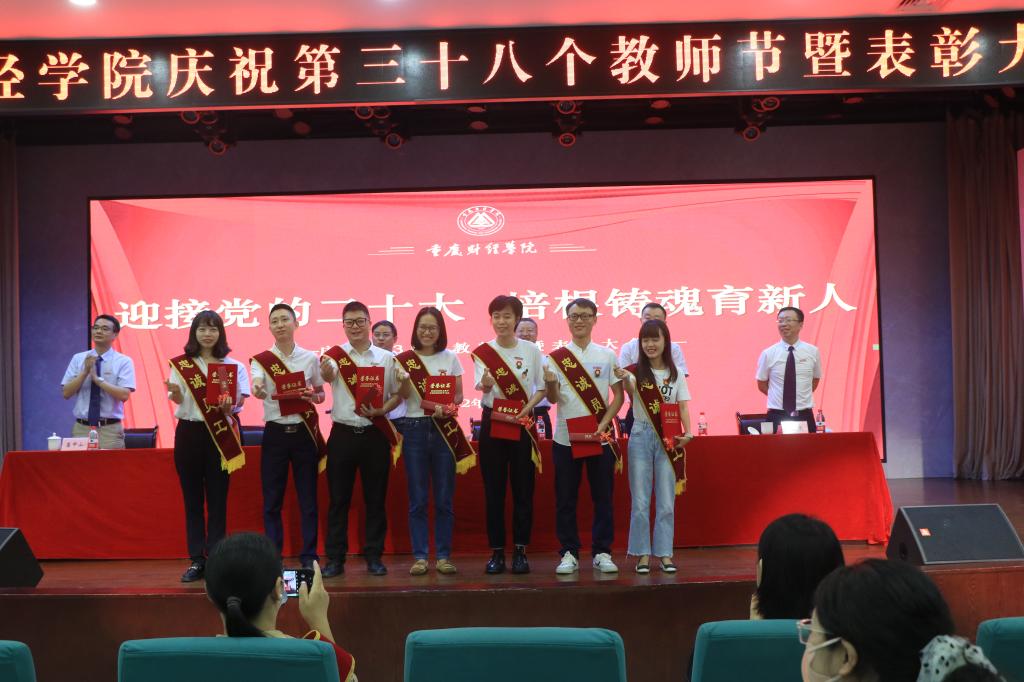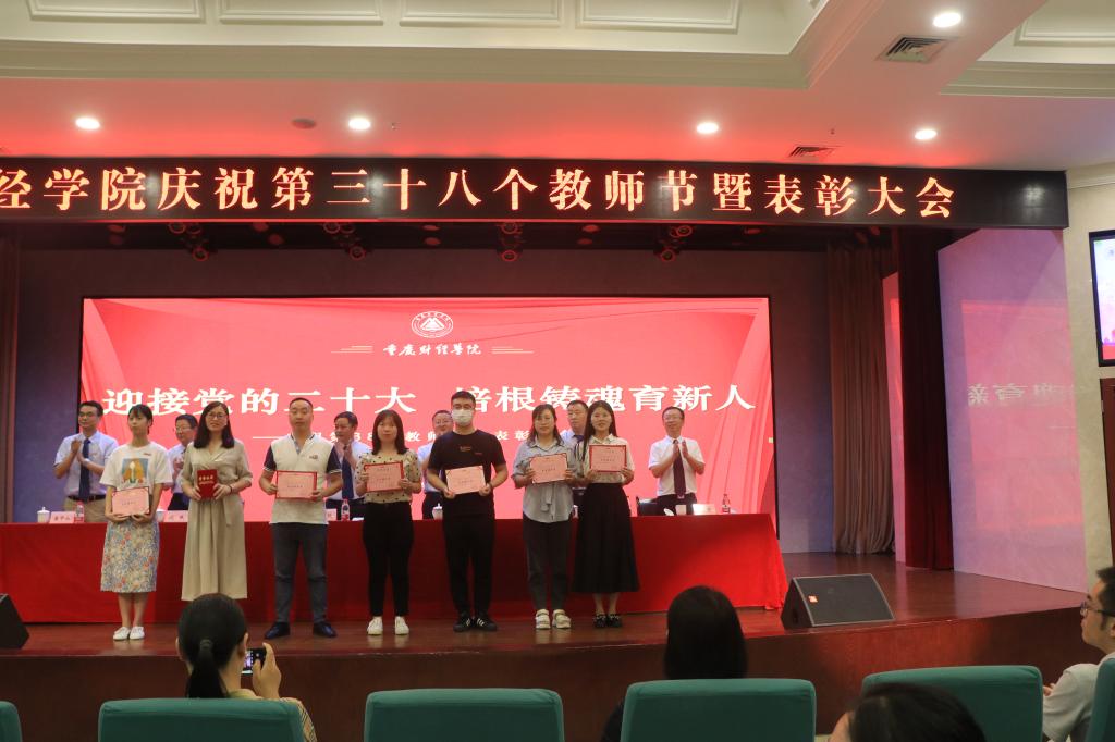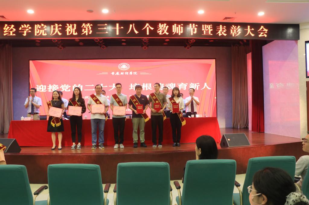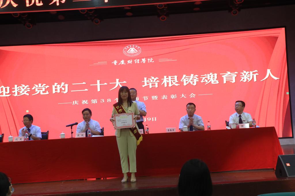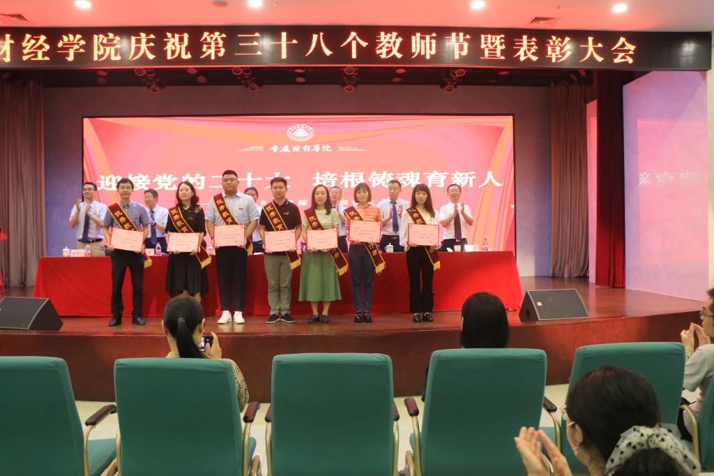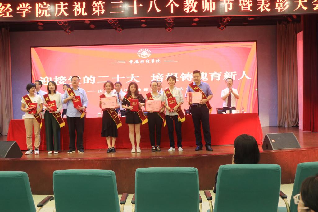 随后,校领导为受表彰教职工代表分别颁发“重庆市优秀辅导员”、“重庆市教书育人楷模”、校龄满10年的“忠诚员工”、“优秀员工”、“优秀教育工作者”等多项荣誉,同时还表彰了第一届“课程教学思政大赛”获奖教师、“标兵辅导员”、“优秀辅导员”以及“优秀教研室”和“优秀教研室主任”,并向广大教师为学校各项事业发展做出的重要贡献表示衷心感谢。