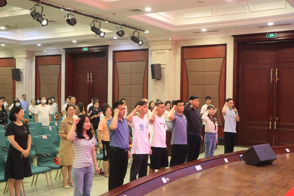 “问渠那得清如许,为有源头活水来。”学校的发展、成长离不开新老教师一代又一代的传承,一批又一批的接力。为鼓励新入职教师投身教育、以身示范,校领导为舒莉等新进教师团队教师授校徽,并由罗胤晨教授带领其进行入职宣誓,由学生代表为老师们送上了鲜花。