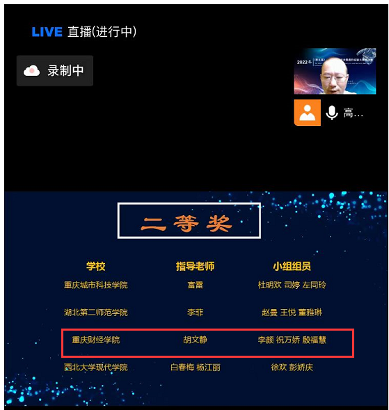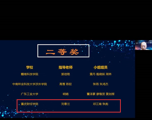9月11日,由中国商业经济学会主办“2022年(第五届)全国高校经济决策虚仿实验大赛”圆满落幕,并于近日进行线上颁奖,本次比赛共有四个赛道。经济学院刘春兰老师指导的19级经济学专业邓江南、张彪同学参与的赛道一(经济学综合博弈实验大赛),与来自全国252所高校共计4241支队伍进行激烈的比赛荣获国赛二等奖(见图1),经济学院胡文静老师指导的19级国际贸易专业李颜小组参与的赛道四(国际经济分析与决策竞赛),与来自全国的93所高校共计480支队伍进行激烈的比赛,荣获国赛二等奖(见图2)。