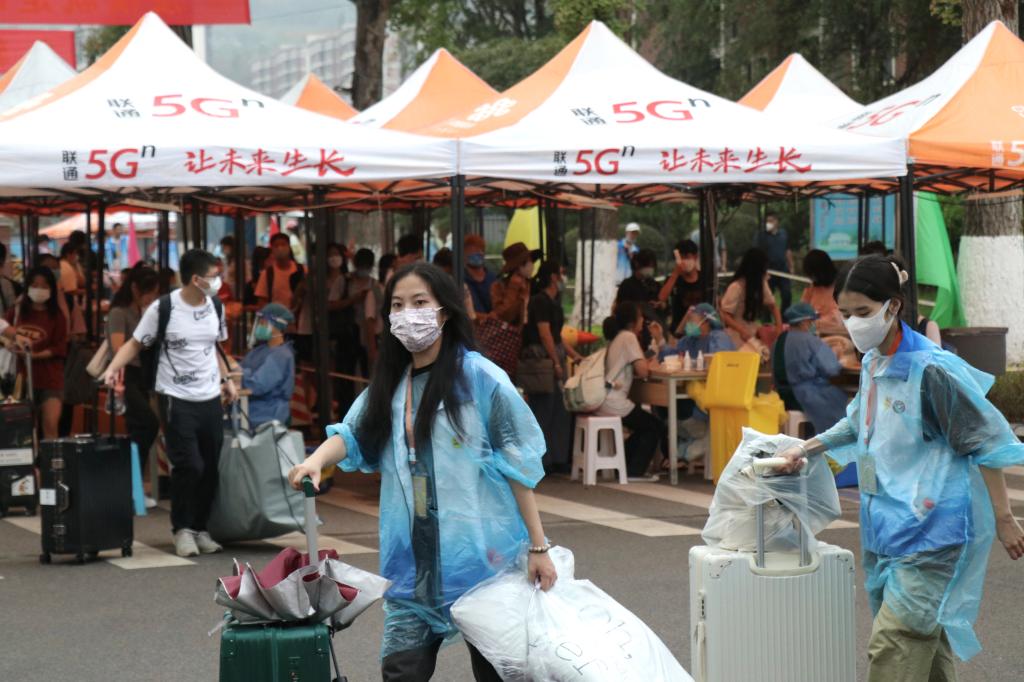 教化除尘开眼界,志愿服务暖人心。白T恤、黄牌子…志愿者们穿梭在火车站、报到点、宿舍,在校园内外,成为了一道靓丽的风景线。行李消杀、二码查验、核酸证明、扫码进校、核酸检测,志愿者们积极行动,校园防疫不松懈;帮助新生登记信息、搬运行李,并为新生答疑解惑,志愿者们热情服务,新生到校很舒心,另外,还有辅导员、宿管阿姨的亲切迎接……让返校归来的学子们感受到重财大家庭的温暖。