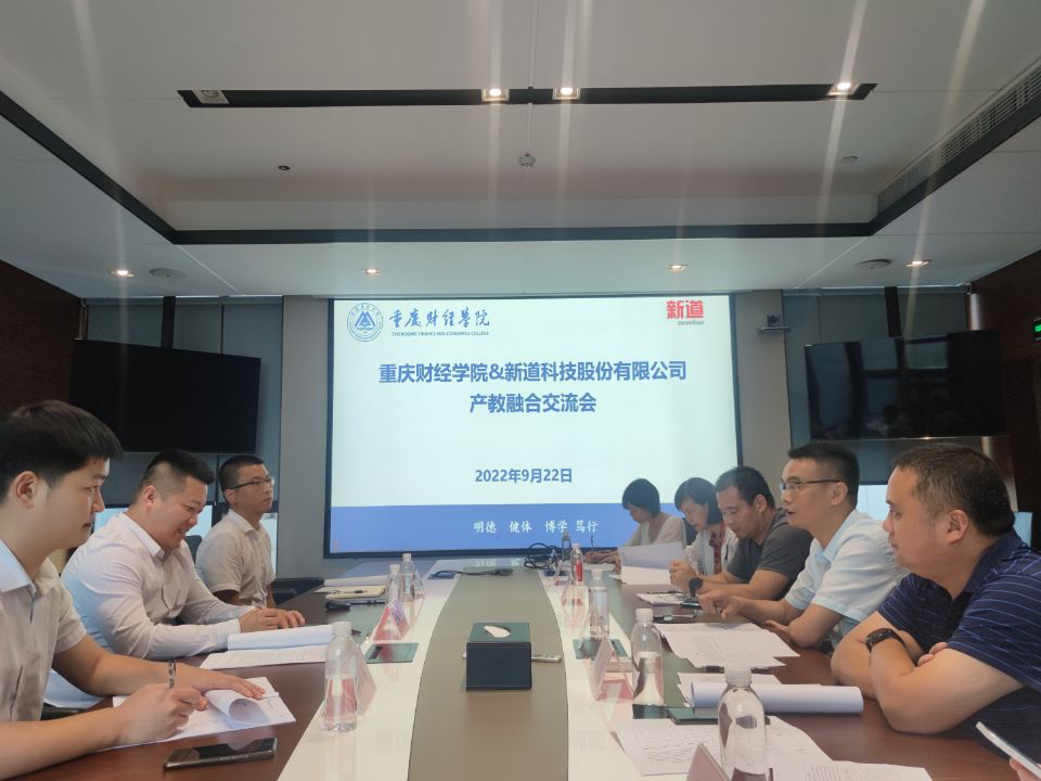近日,我校与新道科技股份有限公司举行产教融合交流会,新道科技股份有限公司重庆区总经理徐福年一行,澳门新葡京博彩校长助理崔中山、讯飞人工智能学院院长周启刚、产教融合中心主任荀毅、会计学院学科带头人章新蓉、副院长李倩等人出席了本次合作洽谈会。