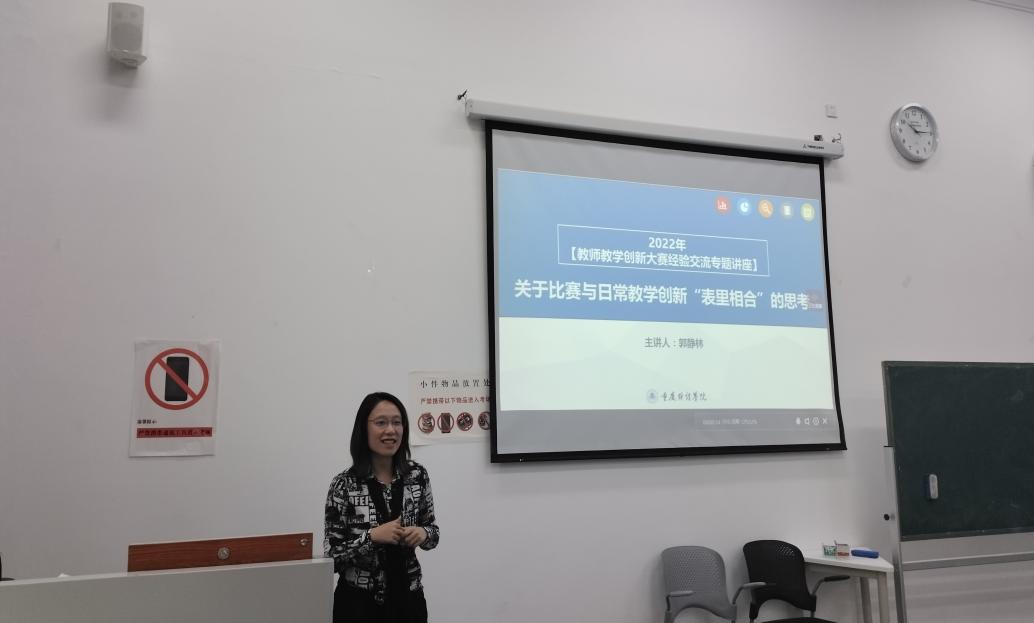 会议采用线上线下相结合方式进行,我校拟参加2022年高校教师教学创新大赛的教师及部分一流课程负责人等30余名教师参加此次活动,活动由教务处李梨副处长主持,校长助理崔中山、教务处处长黄兰出席了此次活动,本次活动特邀2021年重庆市高校教师教学创新大赛二等奖获得者郭静林副教授做参赛经验交流。