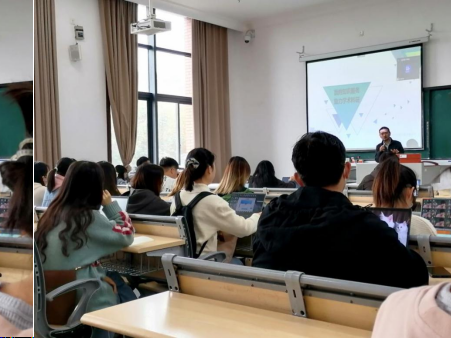 讲座伊始,邝建从认识CNKI、CNKI助力学术科研、全球学术快报展开分享,重点围绕论文的选题、写作、投稿三个方面,介绍了CNKI助力学术科研的方式方法,并以热点话题知识产权为例深入浅出地讲解了如何从现实应用中选题、如何从热点趋势中进行选题、如何在知网中高效检索文献、如何查看优质文献、如何进行文献可视化分析等问题。同时,邝建分享了文献互引网络分析、知网研学平台的运用等。现场气氛高涨,同学们仔细倾听、认真笔记、积极问答。