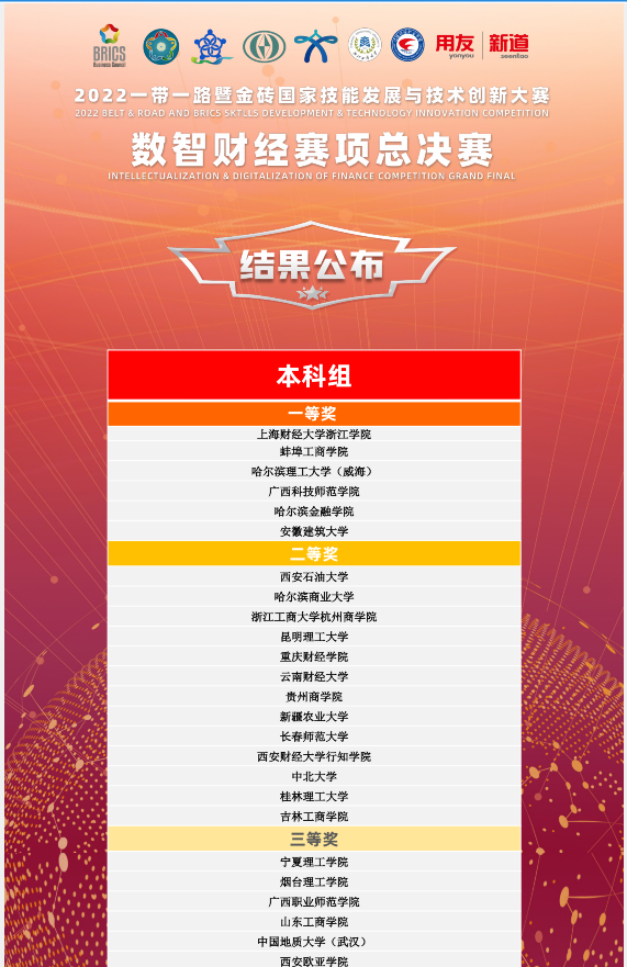 【喜报】会计学院在“2022年一带一路暨金砖国家技能发展与技术创新大赛——数智财经赛”中再获佳绩