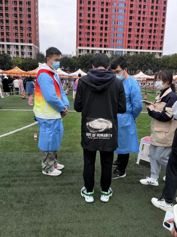 凝心聚力同抗疫,重任在肩做先锋。防疫志愿者们秉持“全心全意服务同学”的宗旨,每日出现在核酸检测现场维持秩序,监督完成核酸后的扫码签到工作。食堂里、操场上......巡逻志愿者们引导同学规范佩戴口罩,查找并第一时间上报学校在校园中存在的安全隐患。各校(院)级、学生组织及各班级班委通力配合、全体调动,织密织牢疫情防控排查网络,将防疫政策落实到每个群体、每个人身上,为学校师生的身体健康与生命安全倾力服务。